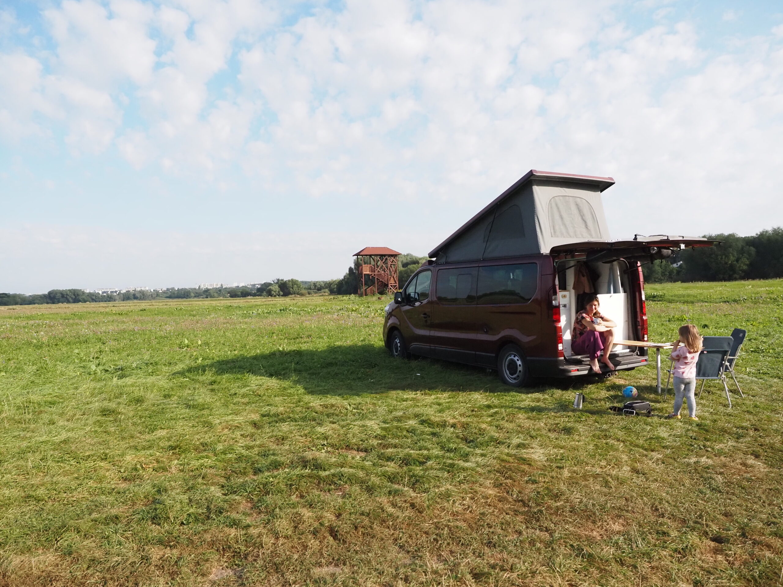 W środę po pracy ruszyliśmy w drogę i jeszcze tego samego dnia dojechaliśmy w okolice Torunia, gdzie znależliśmy miejsce na nocleg nad samą rzeką Drwęcą. To był bardzo dobry start wyjazdu i kolejny przykład tego, jak wygodny może być nocleg w trasie, kiedy ma się pod ręką własny „dom na kółkach”.