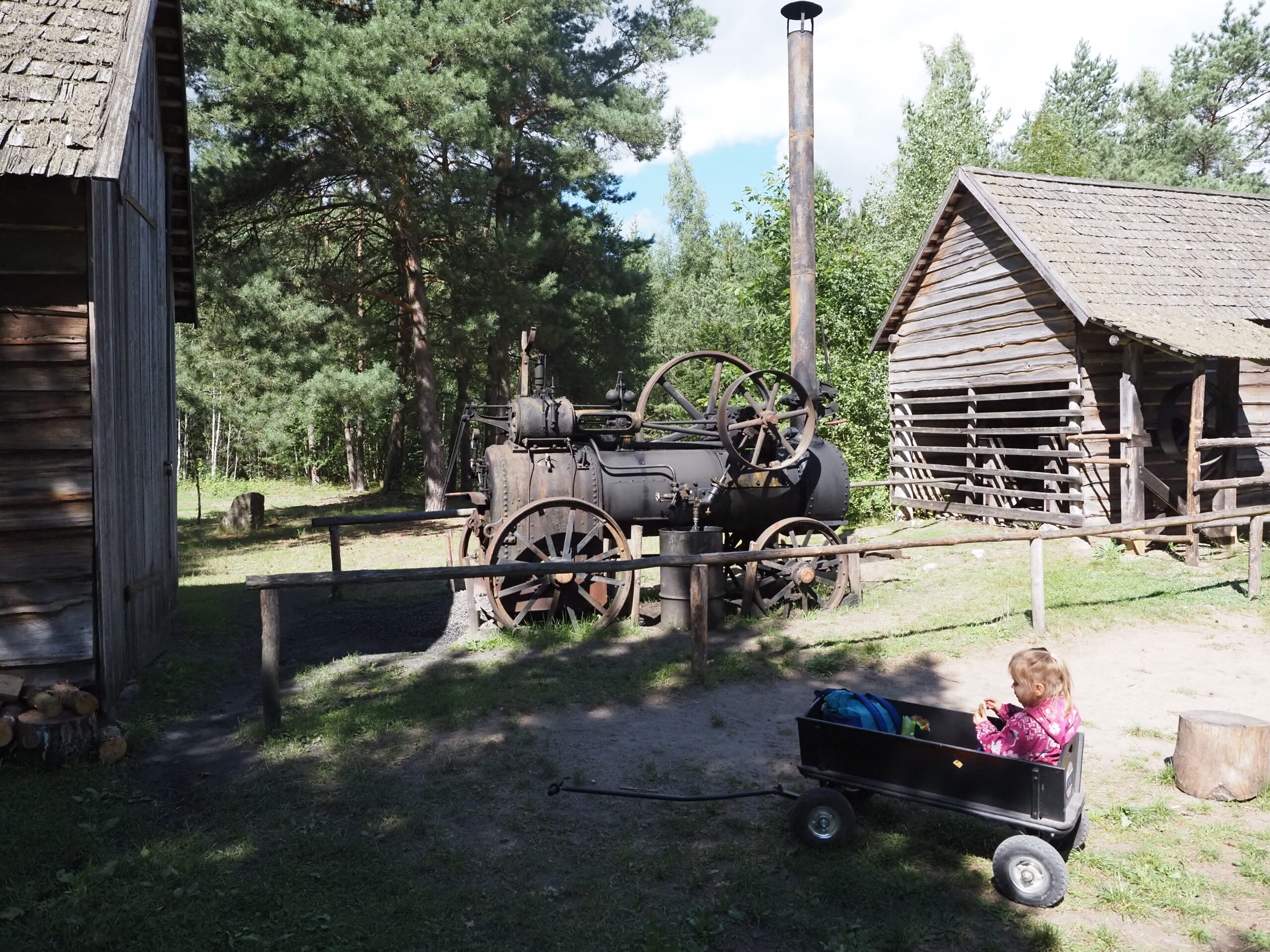 Na miejscu okazało się, że czeka nas sporo chodzenia i jeszcze więcej zwiedzania. Drewniane chaty, wiatraki, stare zabudowania, szkoła, pociag i klimat dawnej wsi kaszubskiej – wszystko rozłożone na dużym terenie, więc można się tam naprawdę nałazić (polecamy zabrać przyczepkę dla dziecka dostępną przy wejściu).