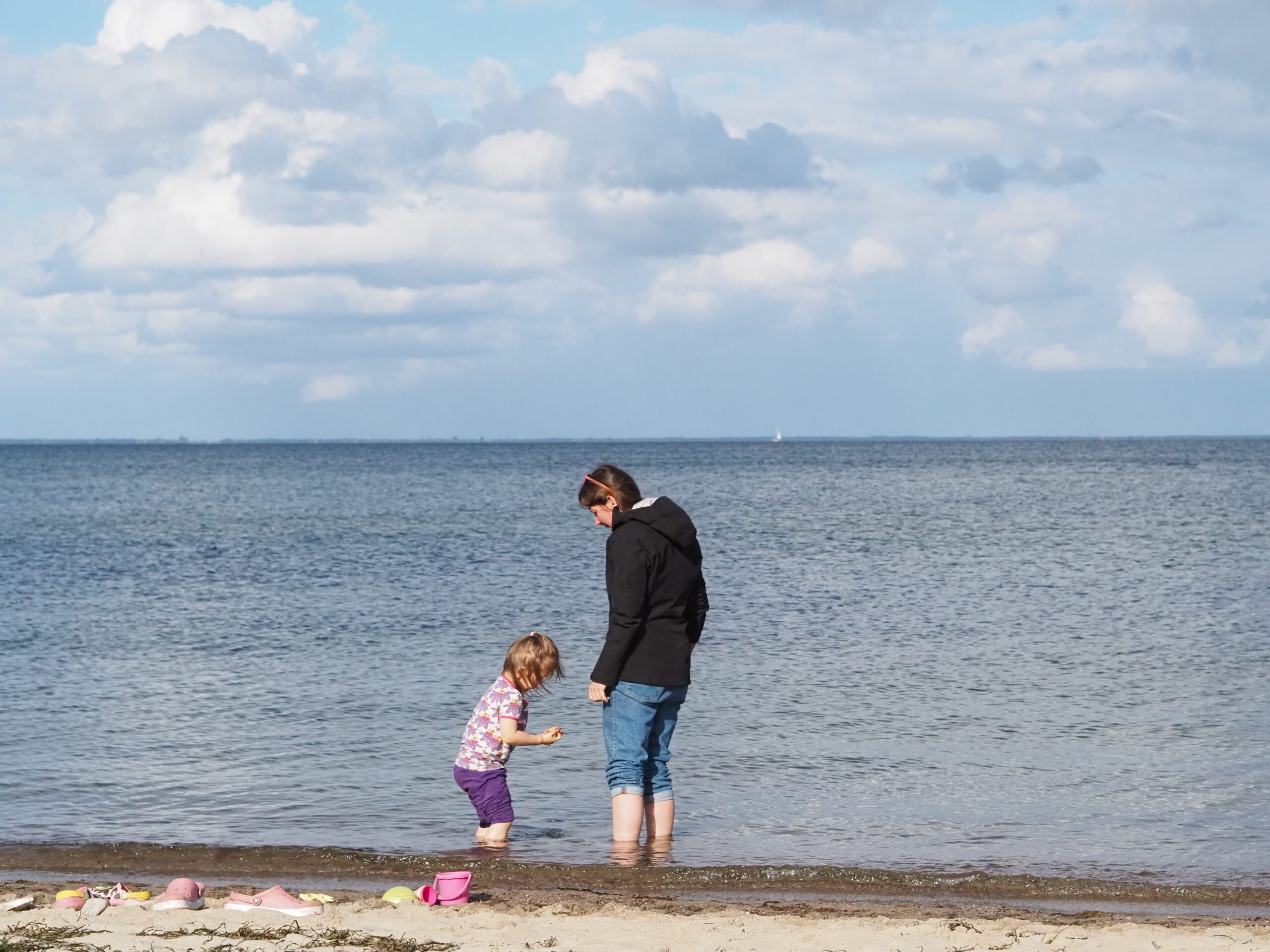 Po wizycie na wieży widokowej ruszyliśmy dalej w stronę morza i dotarliśmy do miejscowości Mechelinki. Uznaliśmy, że skoro jest oddalona od większych, popularnych plaż, to będzie tam ciszej i spokojniej – i dokładnie tego szukaliśmy. Chcieliśmy na chwilę złapać nadmorski klimat i spędzić czas na plaży.